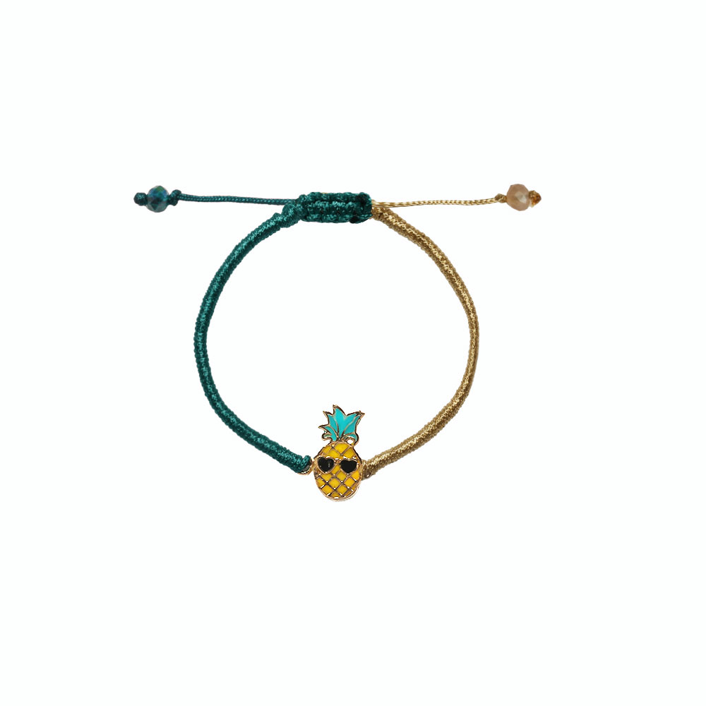 دستبند آناناس مینایی و بافت فیروزه ای و طلایی
