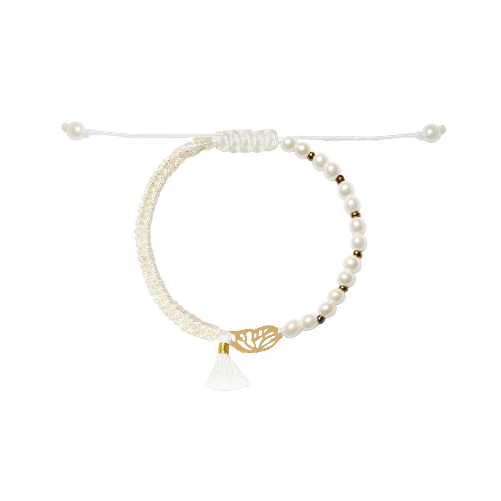دستبند بال پروانه و بافت و مروارید شیری ۱۴