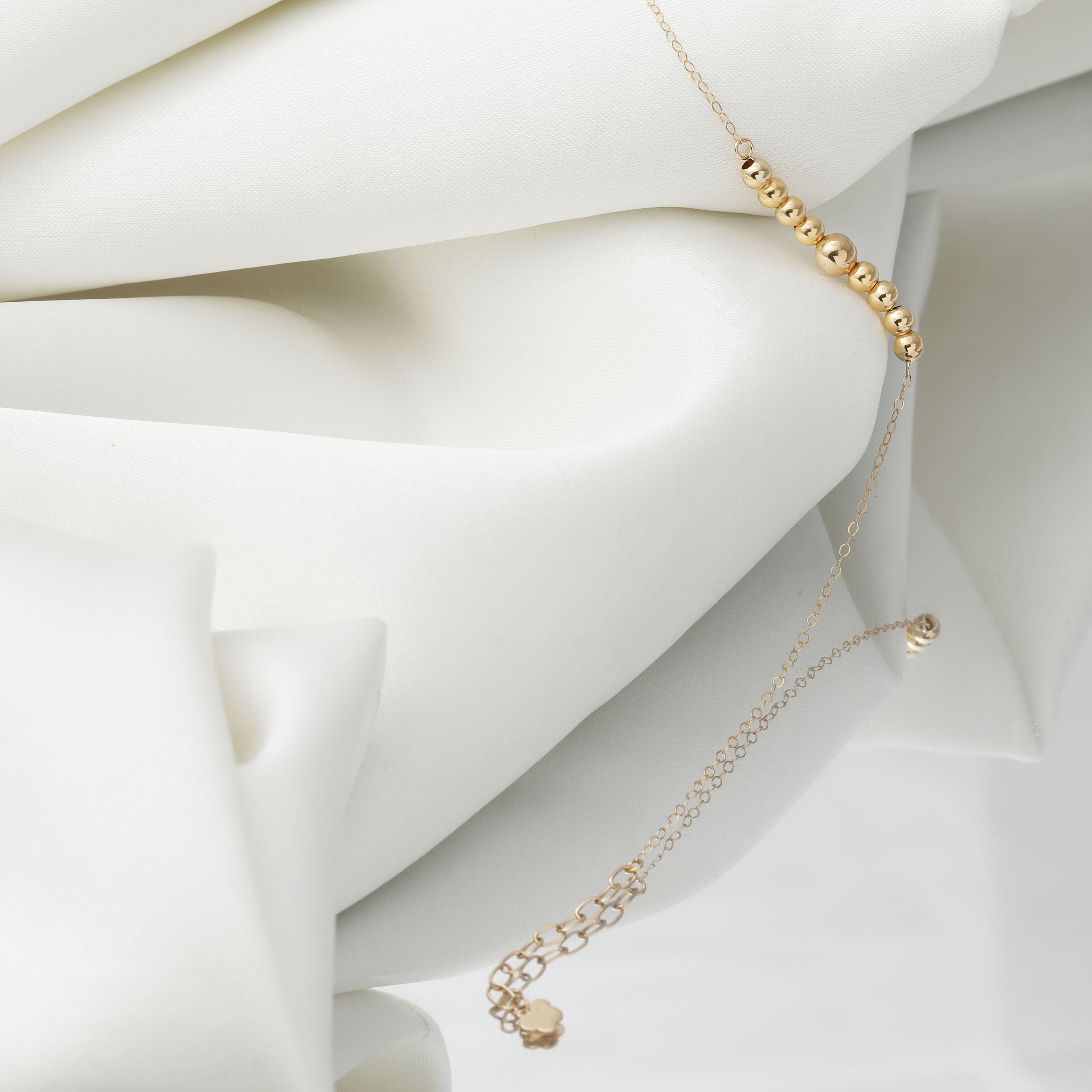 - دستبند تک گوی و 4 گوی ظریف به طول حدود 19 ، قطر گوی بزرگ حدود 0.4 و گوی کوچک حدود 0.2 سانتی متر می باشد.