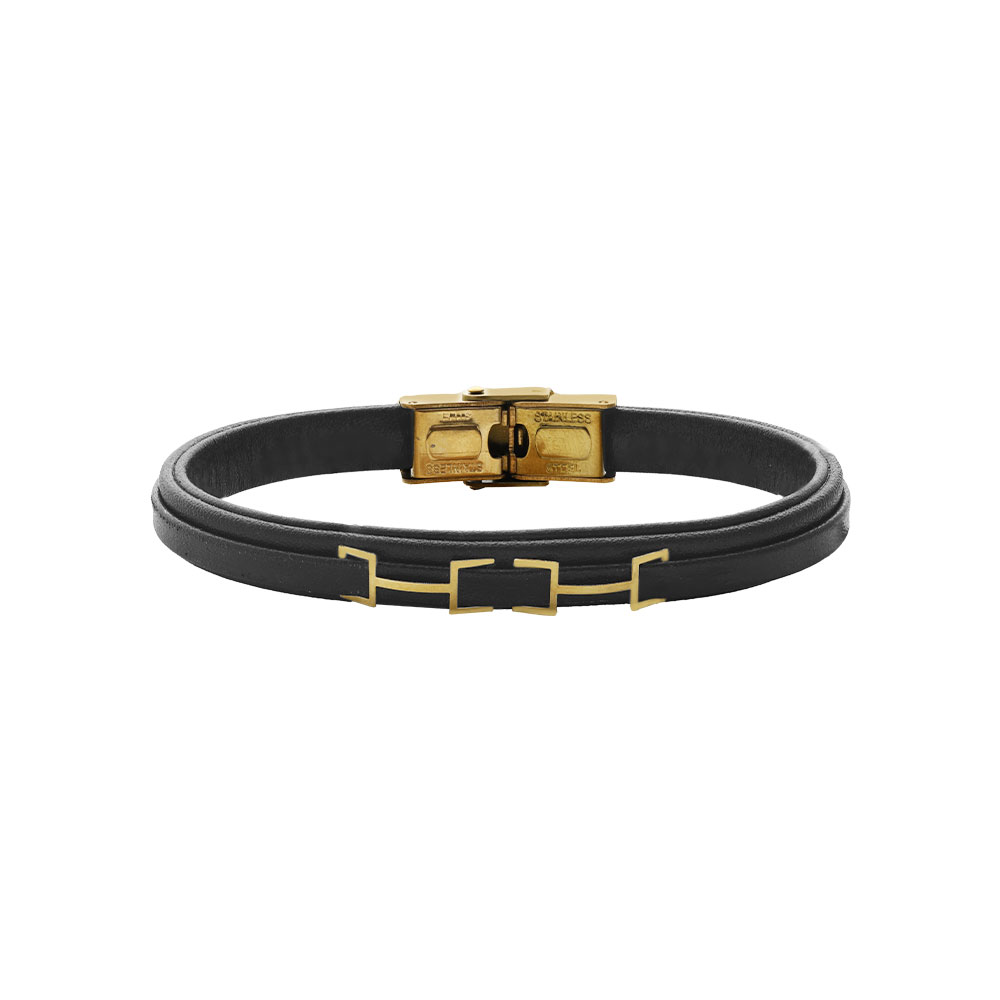 دستبند چهار مستطیل و چرم مردانه خاکستری