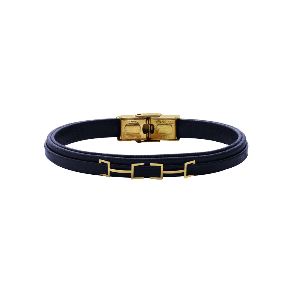 دستبند چهار مستطیل و چرم مردانه سرمه ای