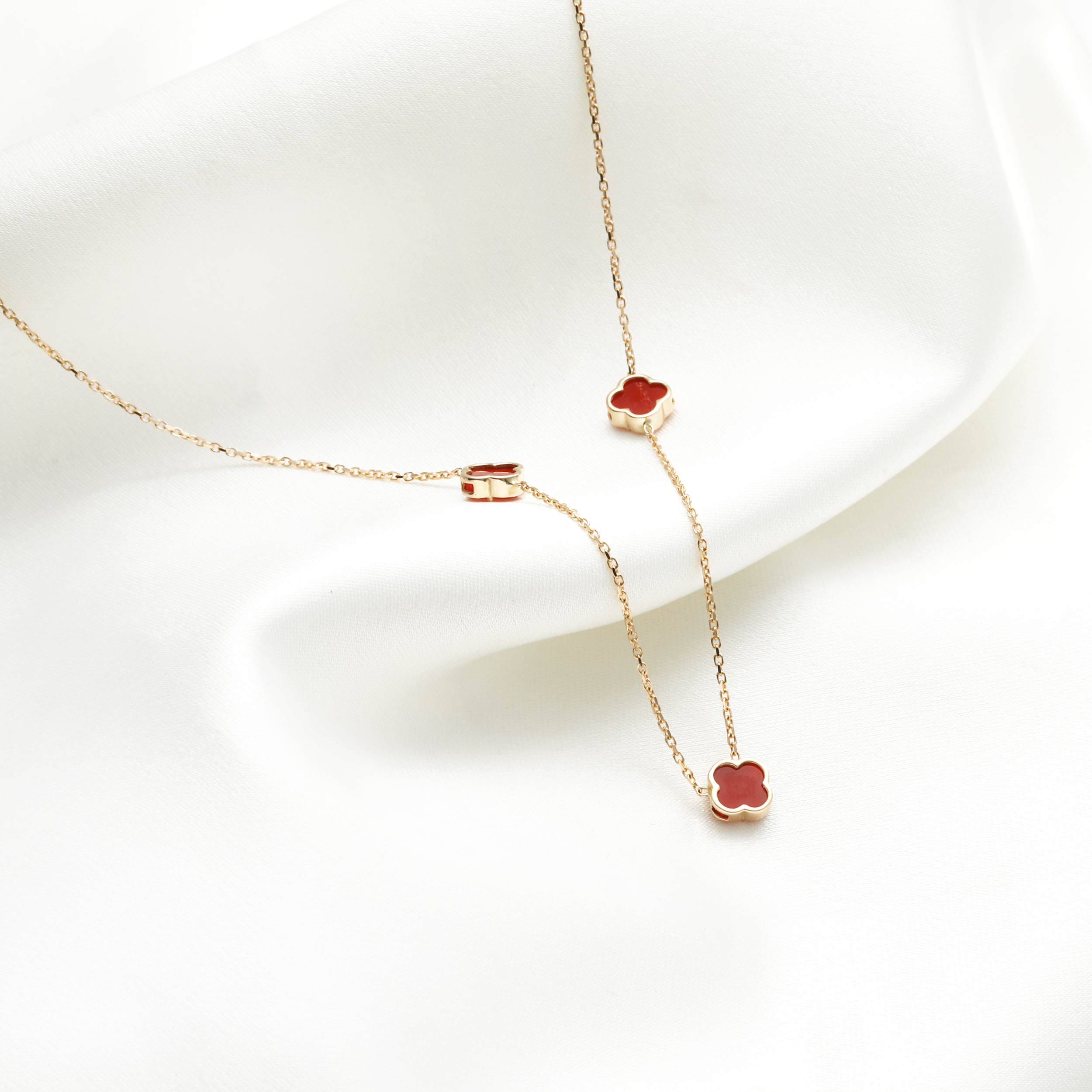 • گردنبند سه ونکلیف رد ظریف به طول حدود 41 و قطر ونکلیف حدود 0.7 سانتی متر می باشد.