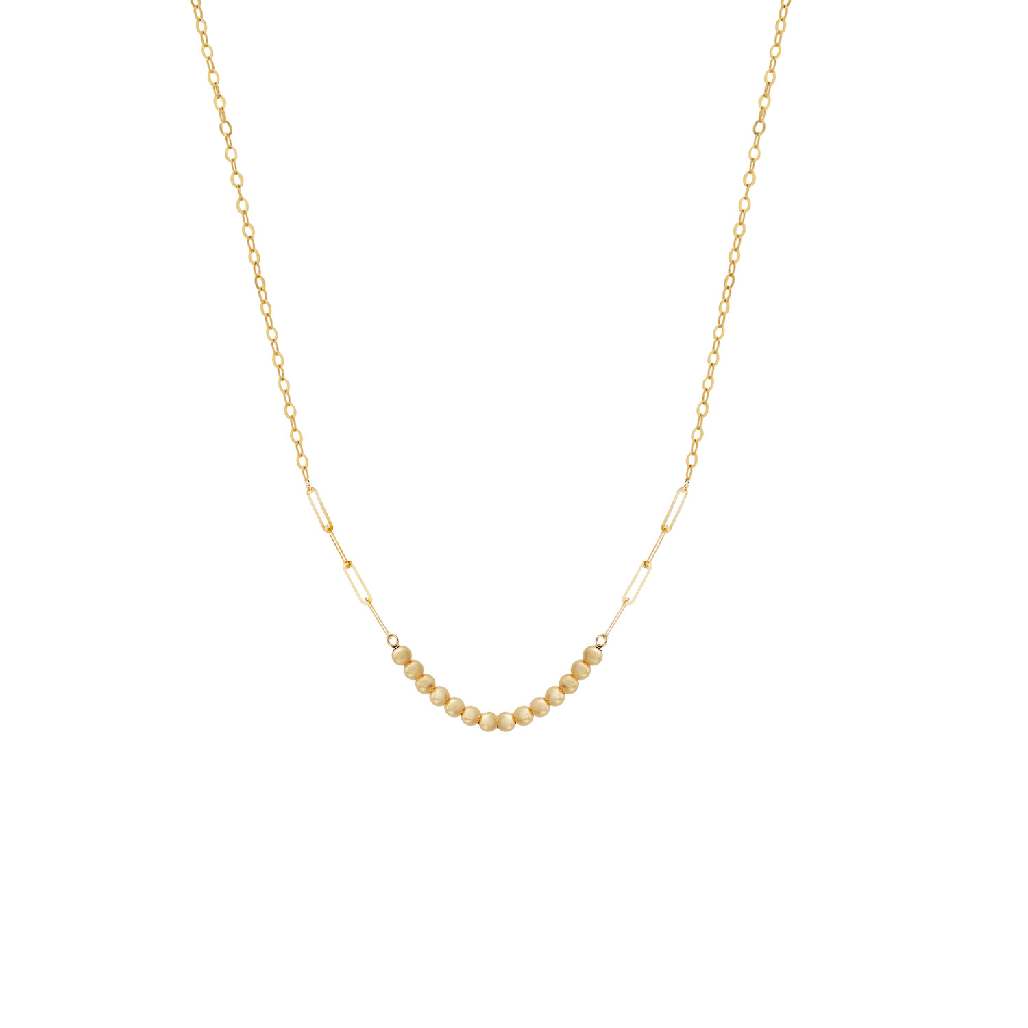 - گردنبند گوی و پیپر پیوسته ظریف به طول حدود 43 ، قطر گوی حدود 0.3 ، سوپرلایت به ابعاد حدود 0.7*0.2 سانتی متر می باشد.