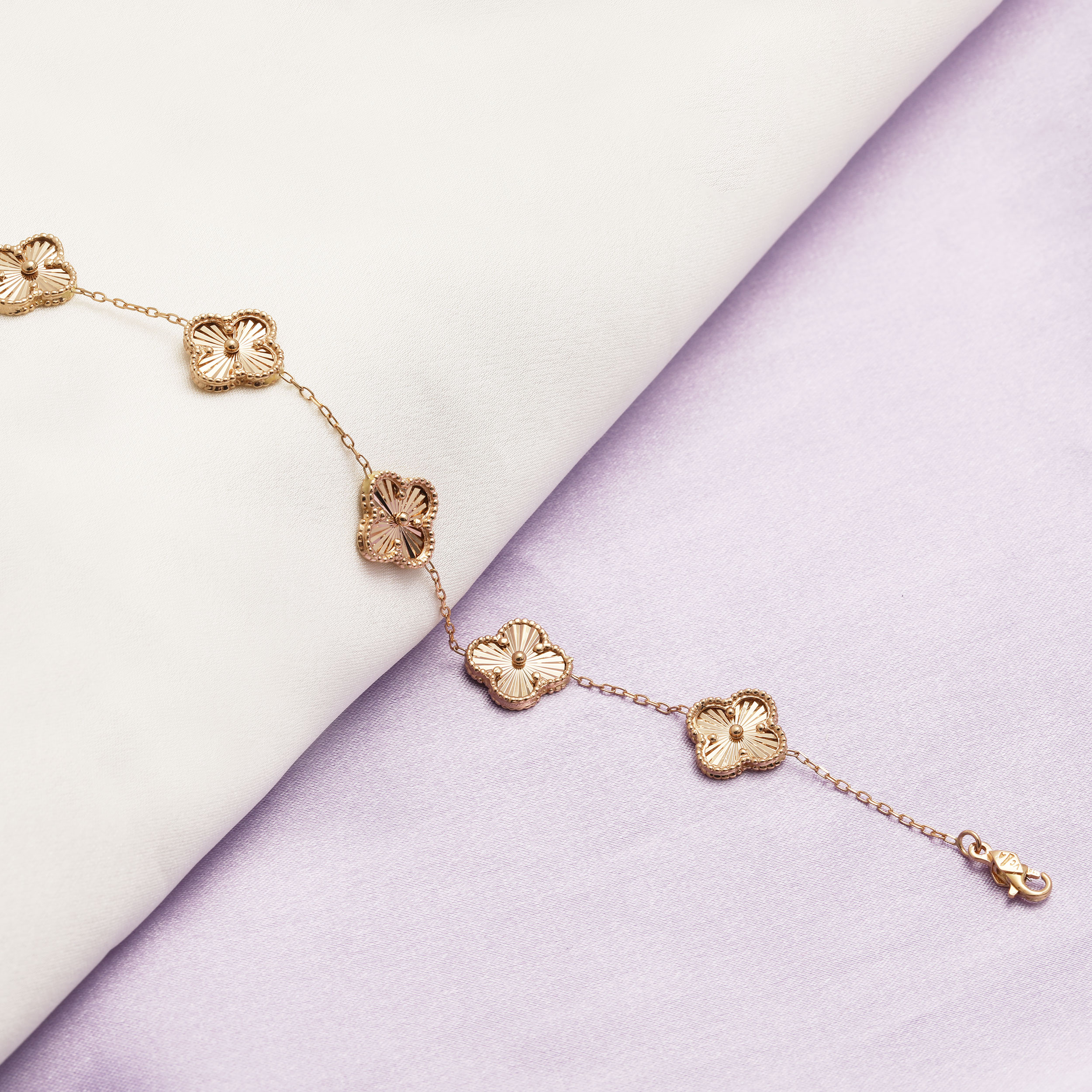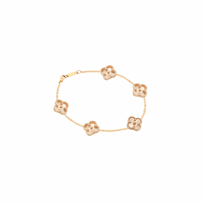 - دستبند پنج ونکلیف الحمبرا الی 2 شامل زنجیر قابل سایز در دو اندازه، حدود 18 و 19.5 و ونکلیف به قطر حدود 1.3 سانتی متر می باشد.