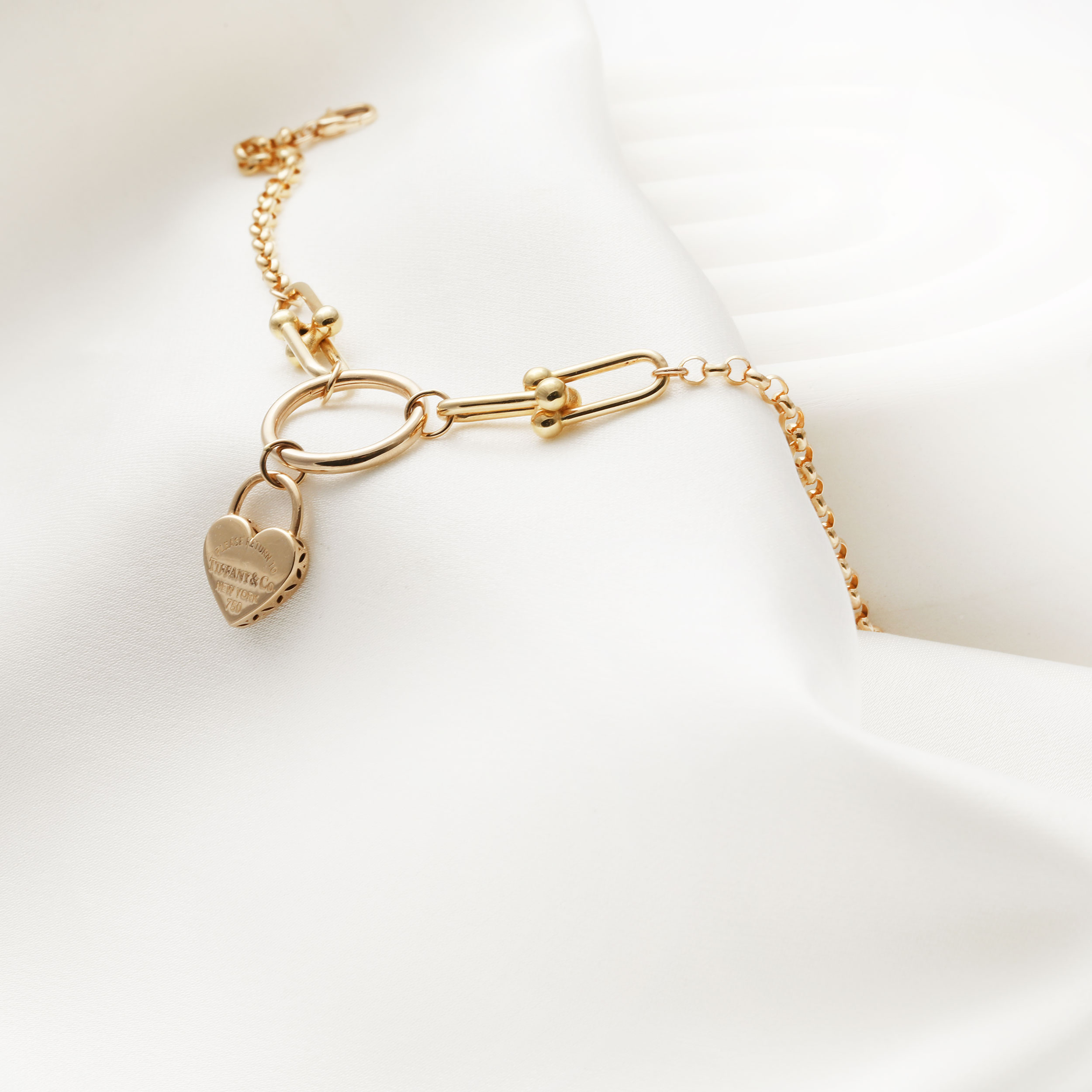 - دستبند رولو ظریف تیفانی قلب تیفانی تخت جدید شامل زنجیر قابل سایز با رولو از حدود 17.5 تا 18.5 سانتی متر می باشد.