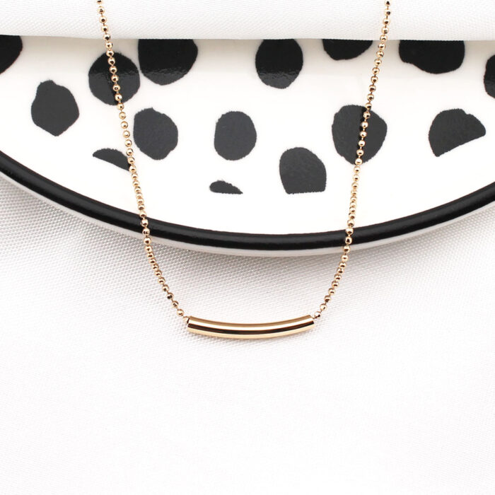 - دستبند لوله ای خم کوچک و بال شامل زنجیر قابل سایز با رولو از حدود 16 تا 19 و لوله ای خم کوچک به طول حدود 2.1 سانتی متر می باشد.