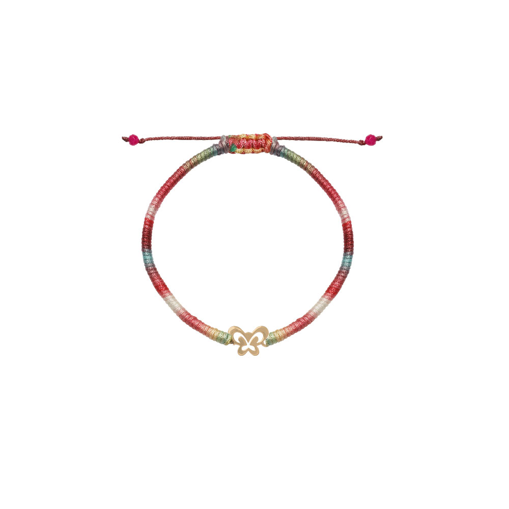 دستبند پروانه دور تو خالی و بافت رنگا رنگ