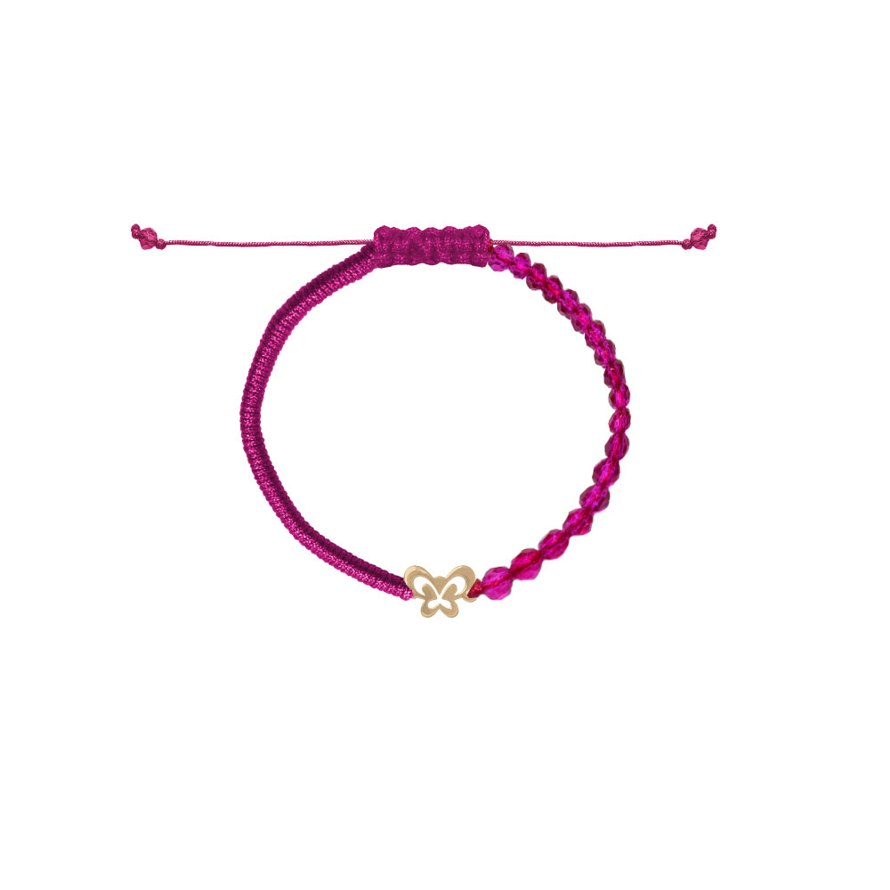 دستبند پروانه دور تو خالی و بافت و سنگ سرخابی