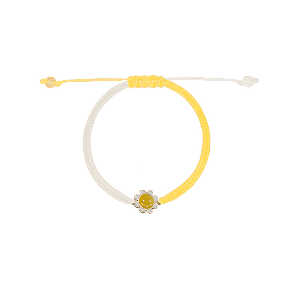 دستبند گل بابونه مینایی و بافت سفید و زرد
