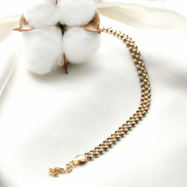 دستبند بافت البرناردو الی دو رنگ سفید طلایی پهن