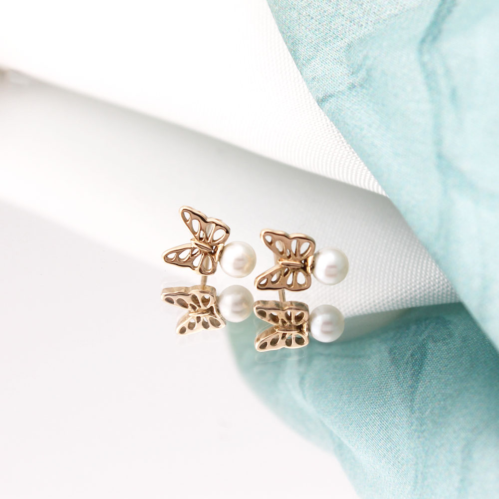 - گوشواره دو بال پروانه متصل و مروارید شامل پروانه برجسته به ابعاد حدود 0.6*0.7 سانتی متر می باشد.
