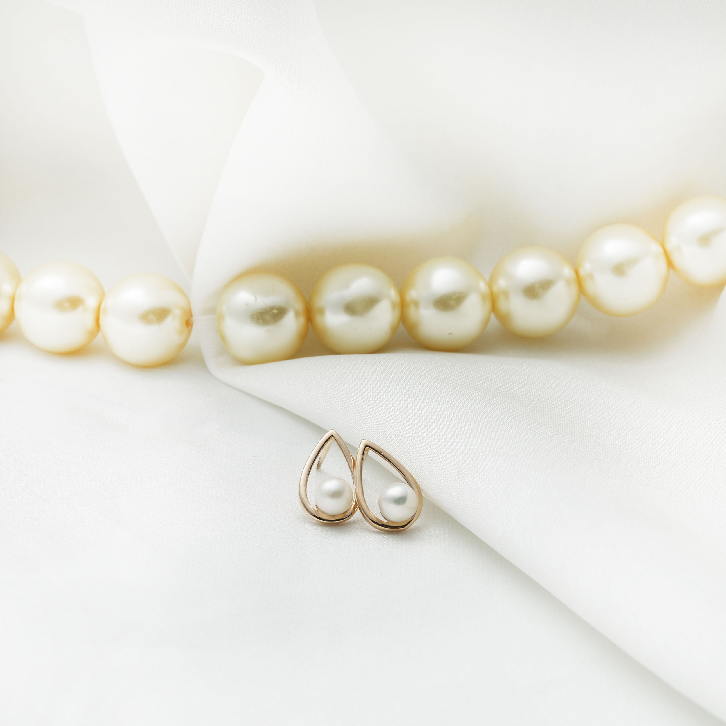 گوشواره اشک ساده و مروارید - الی گلد گالری