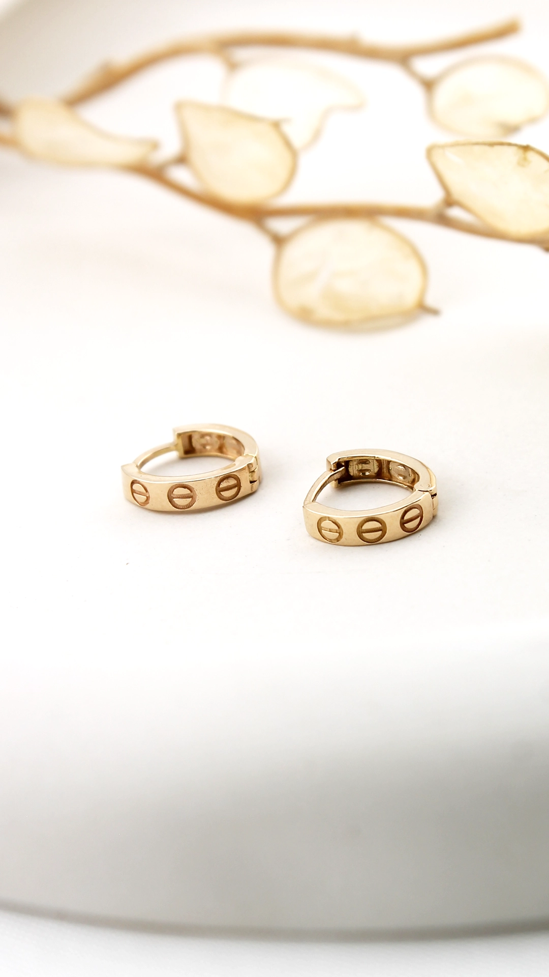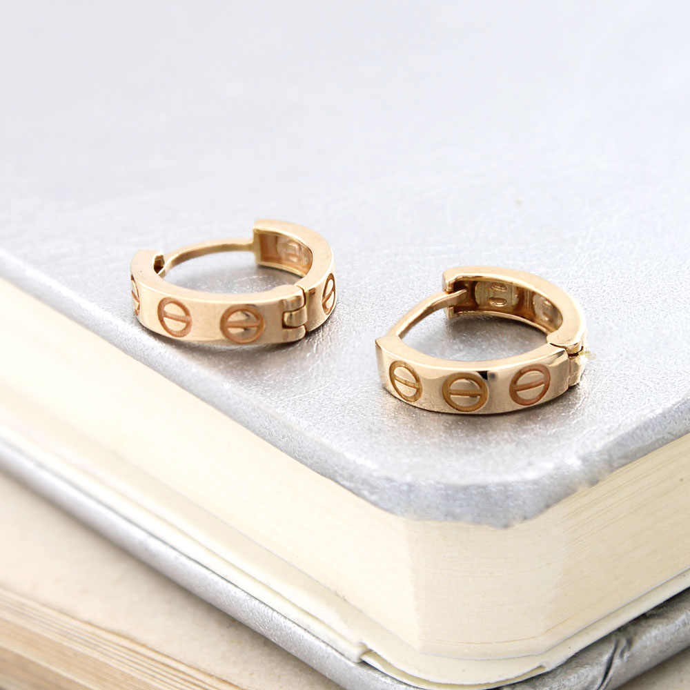 - گوشواره حلقه کارتیه ظریف به قطر حدود 1.2 و به پهنای حدود 0.4 سانتی متر می باشد.