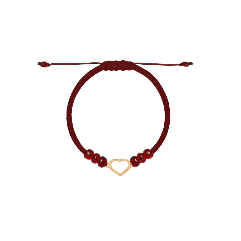 دستبند قلب تو خالی و بافت و سنگ زرشکی