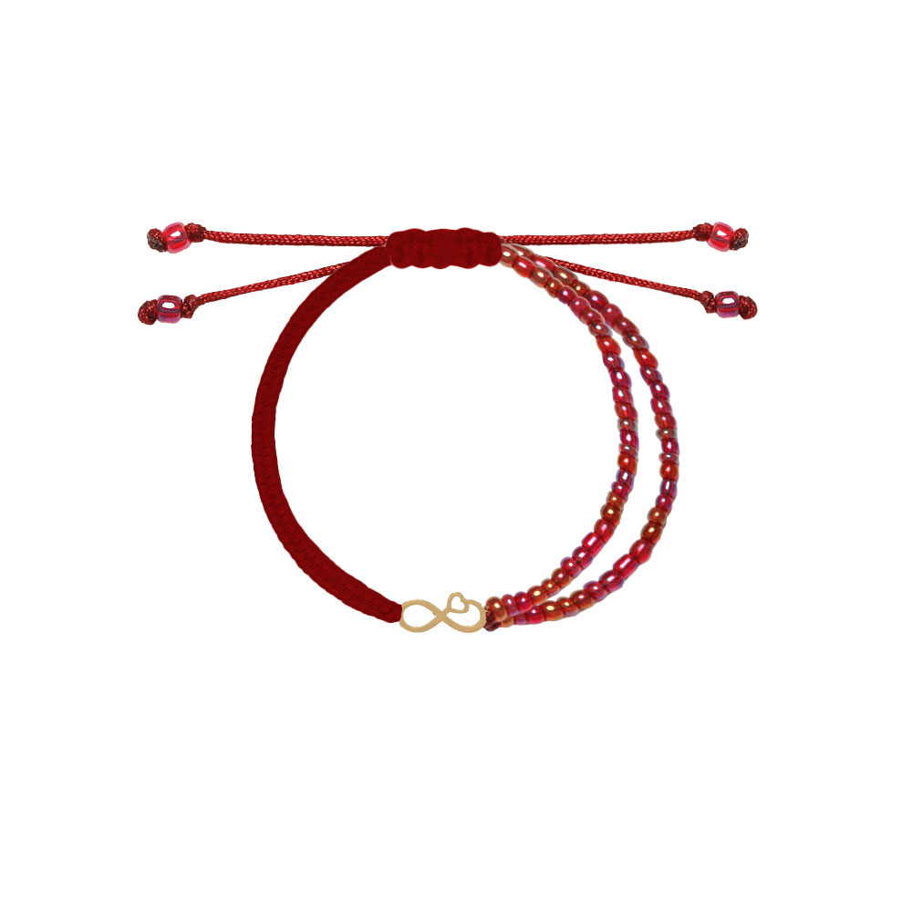 دستبند بی نهایت و قلب و بافت و سنگ زرشکی