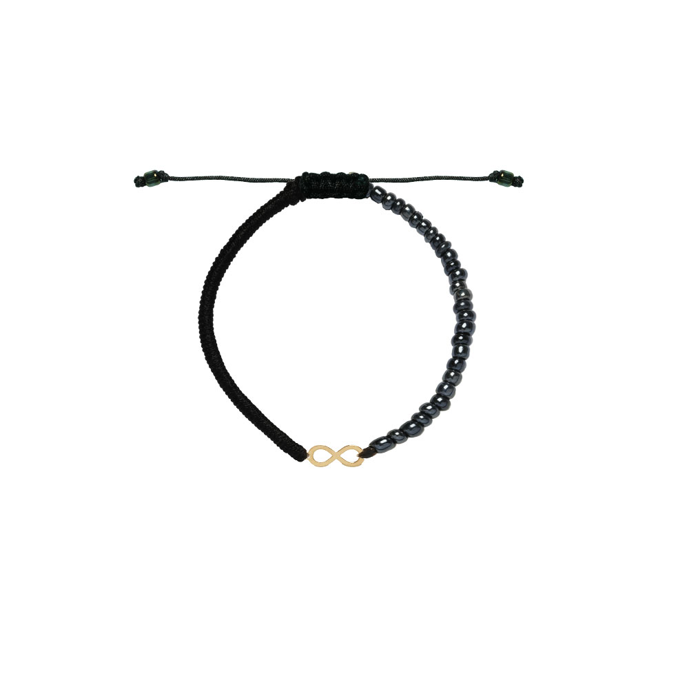 • دستبند بی نهایت و بافت و سنگ مشکی پلاک به ابعاد حدود 0.7*1.3 سانتی متر می باشد.