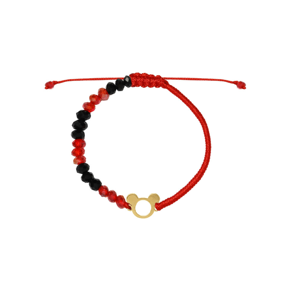 دستبند میکی موس فانتزی و بافت و سنگ قرمز و مشکی