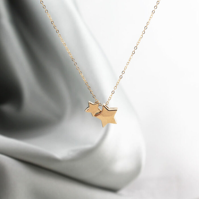 - گردنبند دو ستاره شامل زنجیر به طول حدود 41، دو ستاره به قطر حدود 0.5 و 0.9 سانتی متر می باشد.