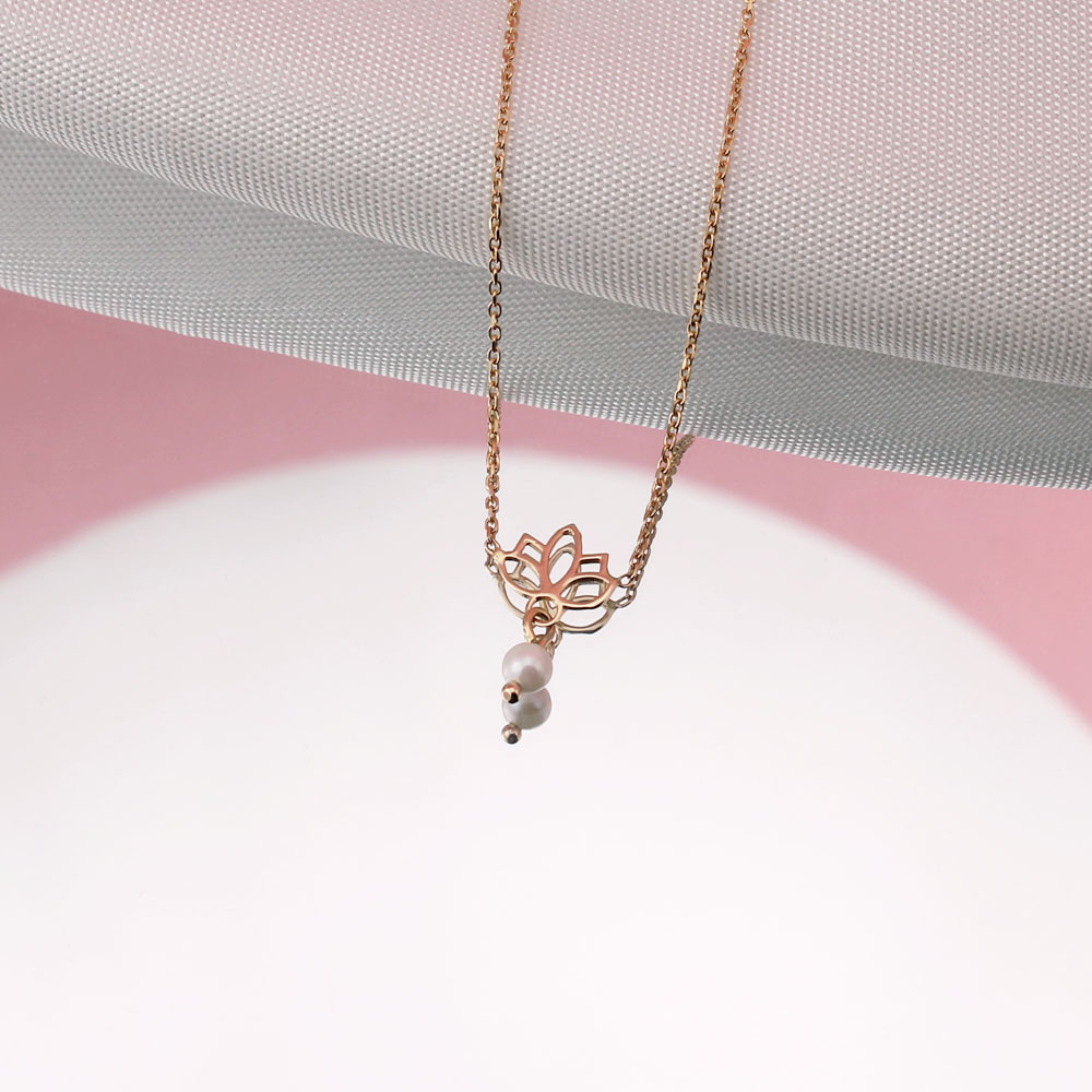 گردنبند نیلوفر و مروارید ظریف - الی گلد گالری
