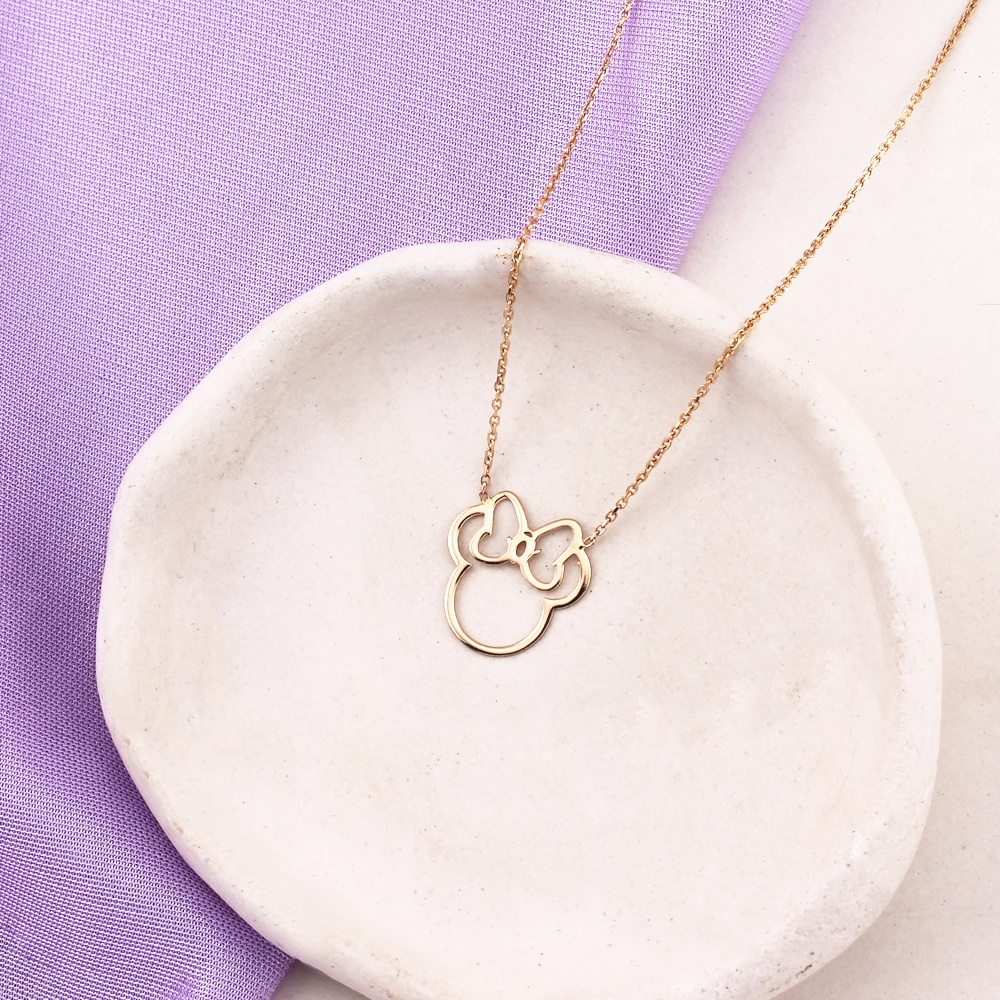 • گردنبند مینی موس تو خالی بچه گانه شامل زنجیر به طول حدود 32 سانتی متر می باشد.