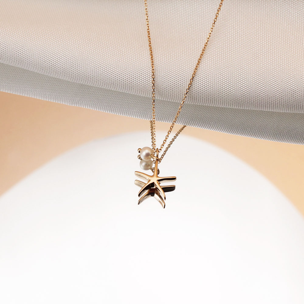 گردنبند ستاره دریایی جدید و مروارید - الی گلد گالری