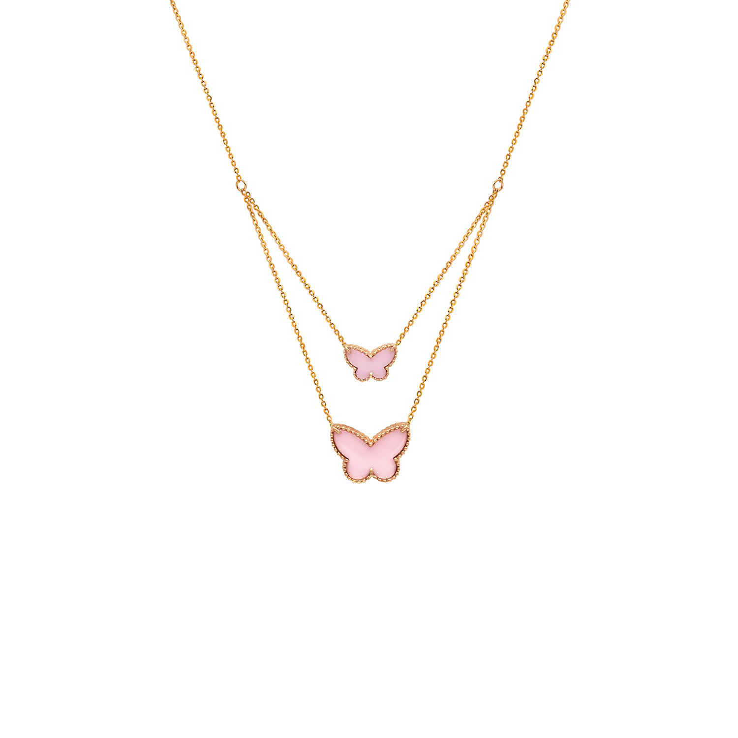 گردنبند دو رج طرح پروانه پینک