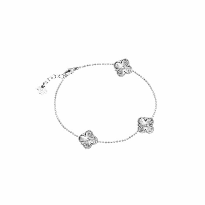 - دستبند سه ونکلیف الحمبرا سفید الی شامل زنجیر قابل سایز با رولو از حدود 16.5 تا 18 سانتی متر می باشد.