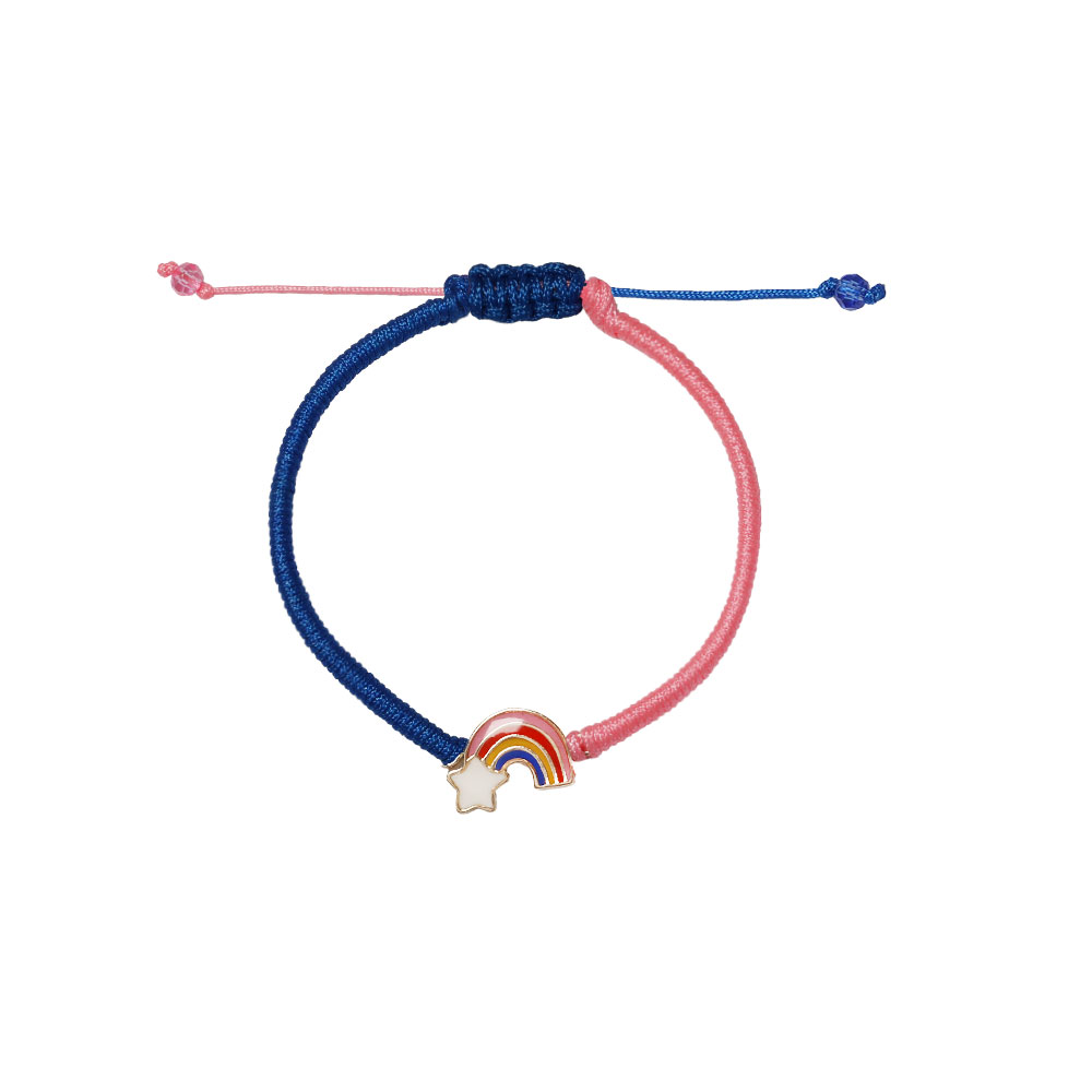 دستبند رنگین کمان مینایی و بافت آبی و صورتی
