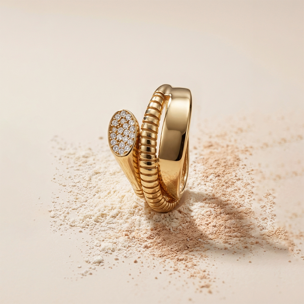 - انگشتر سه پیچ و بیضی نگینی به پهنای کلی حدود 1.4 سانتی متر می باشد.