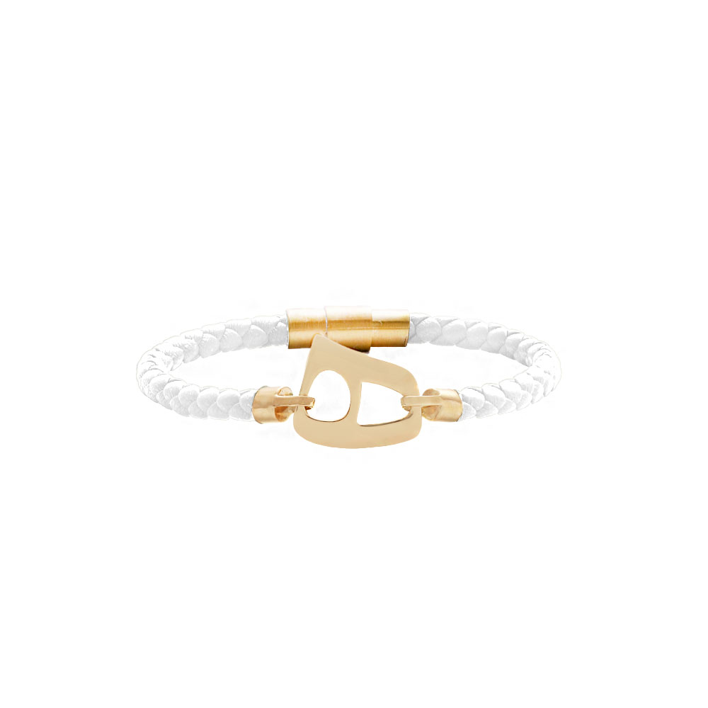 - دستبند هـ نیمانی و چرم سفید پلاک به ابعاد حدود 2.6 *2.4 سانتی متر می باشد.